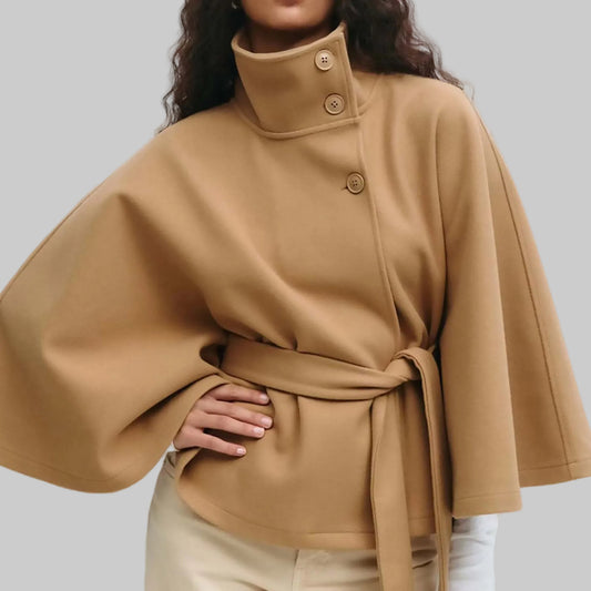 CASSIA – Flared Sleeve Stand Collar Trench Coat