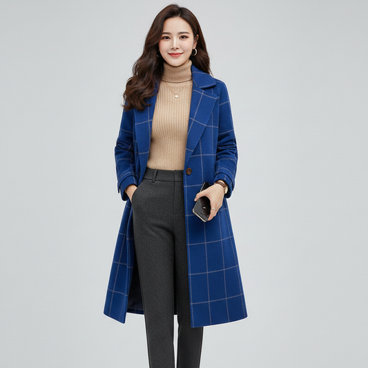 CAMILLE– Retro Plaid Lapel Long Coat