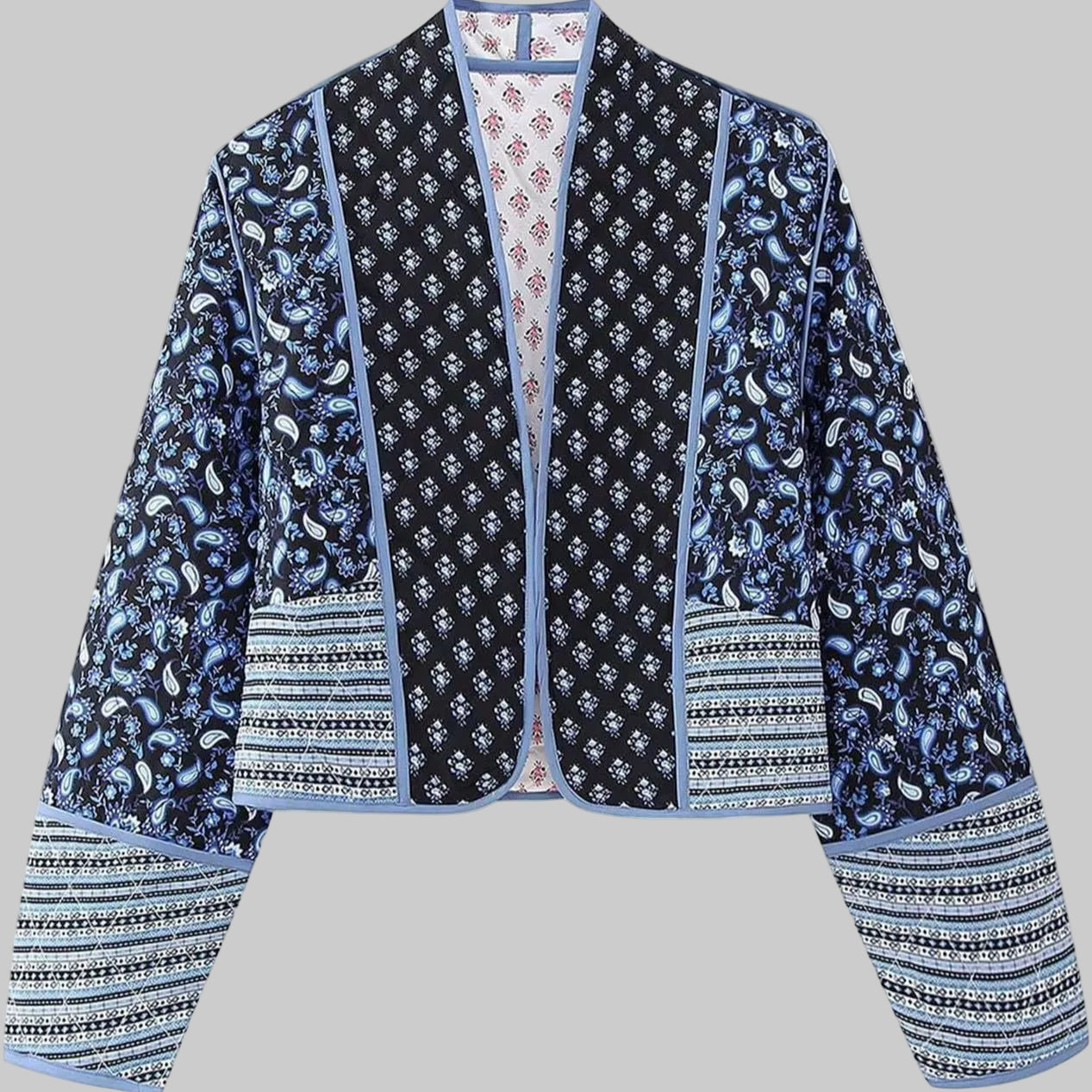 This women’s jacket coat features vibrant floral patterns and a lightweight design for effortless style and comfort. Its quilted texture and slim-fit silhouette offer a flattering, modern look, with some styles reversible for versatile wear.